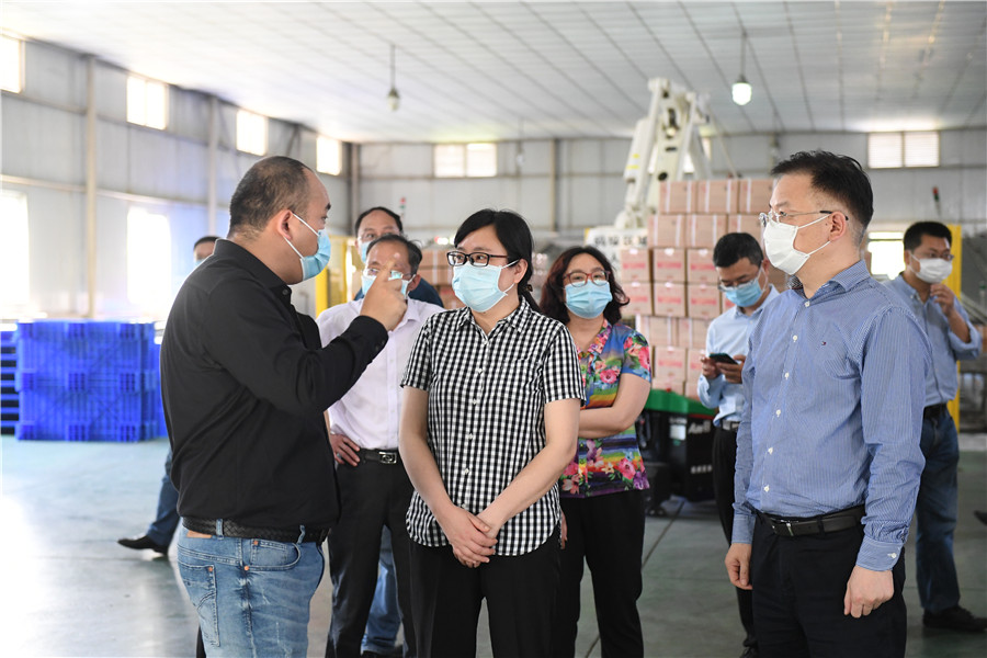 張國智一行先后前往重慶紅九九食品有限公司、重慶鋼鐵研究所有限公司,深入生產(chǎn)車(chē)間、研發(fā)中心等地調研,了解企業(yè)復工復產(chǎn)情況,征詢(xún)企業(yè)意見(jiàn)建議。