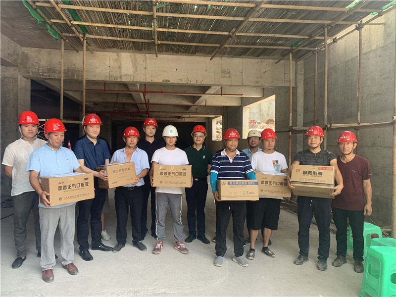8月7日,建橋置業(yè)公司支部負責人來(lái)到建橋C區N10-1商業(yè)配套項目、生物醫藥園項目等四個(gè)在建項目工地,為高溫期間仍?shī)^戰在一線(xiàn)的工人送上人丹、藿香正氣液等防暑藥品,在炎炎夏日送上了一份清涼。