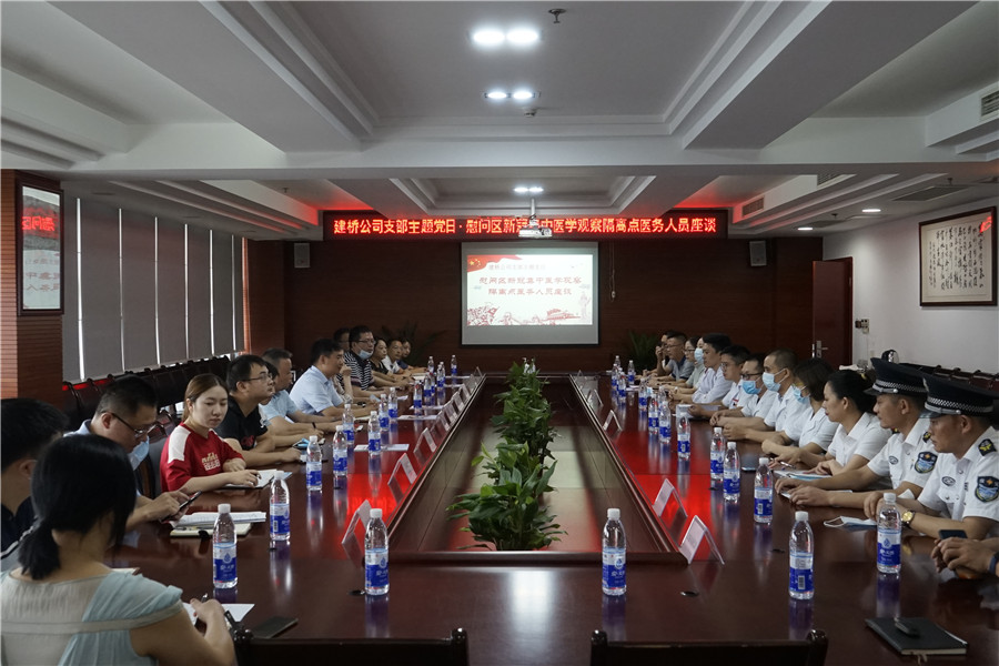 8月20日,建橋公司開(kāi)展開(kāi)放式主題黨日活動(dòng),慰問(wèn)區新冠肺炎集中醫學(xué)觀(guān)察隔離點(diǎn)醫務(wù)人員、公安干警、安保人員并召開(kāi)座談會(huì ),引領(lǐng)廣大黨員聽(tīng)身邊故事,學(xué)先進(jìn)典型,思前行方向,弘揚抗疫精神,助推高質(zhì)量發(fā)展。區衛健委、區公安分局、單軌公司黨總支、區財政局黨支部、各區屬?lài)簏h支部約40人參加觀(guān)摩交流。
