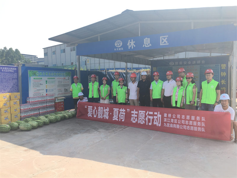 7月29日,建橋公司聯(lián)合濱江灣區公司、九宮廟商圈公司到凰騰西宸御府(一期)項目工地開(kāi)展“愛(ài)心靚城?夏荷”志愿行動(dòng),看望慰問(wèn)堅守在崗位的一線(xiàn)工作人員,為他們送去清涼飲品、避暑藥品等防暑降溫物資。(供稿:陳紫君)