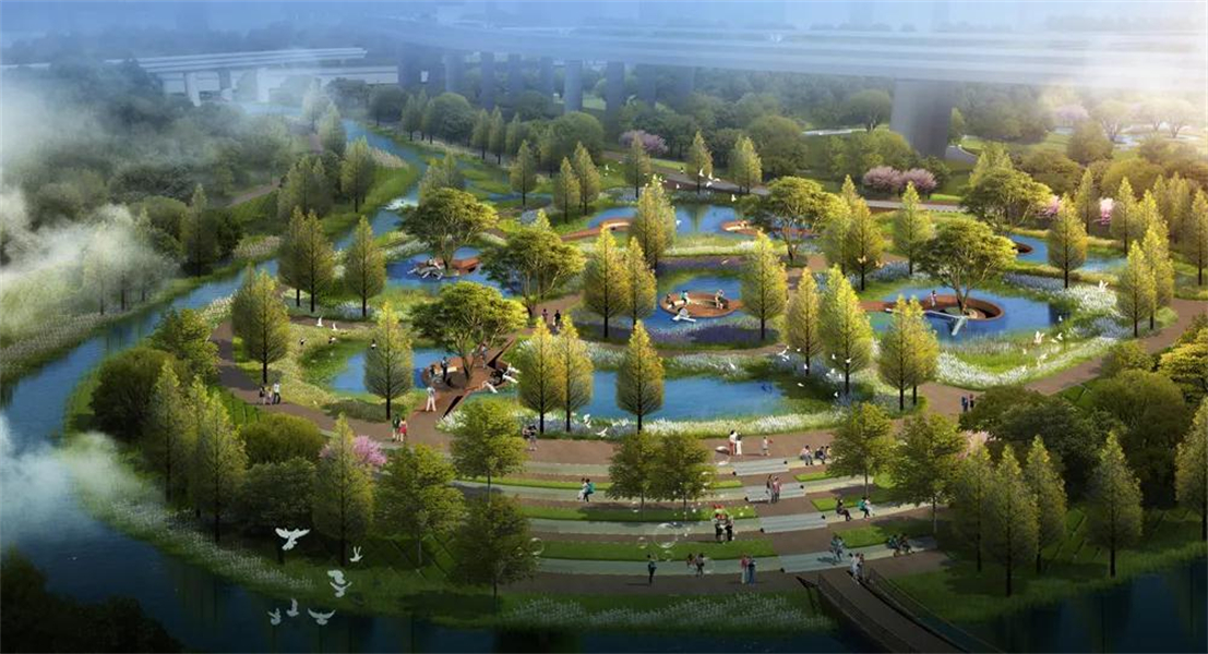 該項目水環(huán)境治理部分中的“海綿城市專(zhuān)項工程”特別引人關(guān)注,該工程計劃在沿河雨水排出口處設置配水井,通過(guò)管道連通雨水濕塘、梯級濕地、滲透塘進(jìn)行水量調配;集蓄利用雨水、消減徑流總量、徑流污染和峰值流量,實(shí)現凈化雨水的功能;雨水在滲透塘中調蓄下滲,超過(guò)最大設計滲透能力的雨水通過(guò)溢流井排入河道。